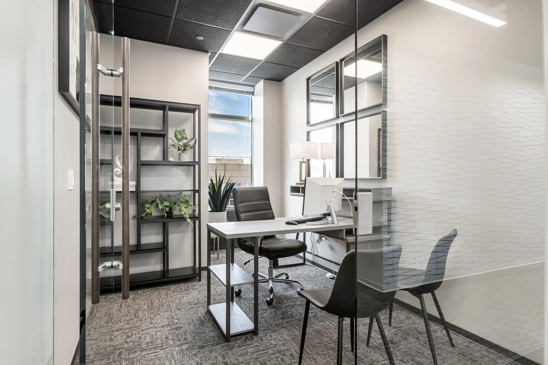 Your package includes lockable private offices with 24/7 access, completely furnished layouts to choose from, enterprise-grade internet, IT support, free printing, janitorial service, community events, an on-site receptionist to greet clients and receive shipments, and hours for our world-class meeting rooms. In addition, you have access to our coffee lounge with unlimited water, coffee, and select espresso.